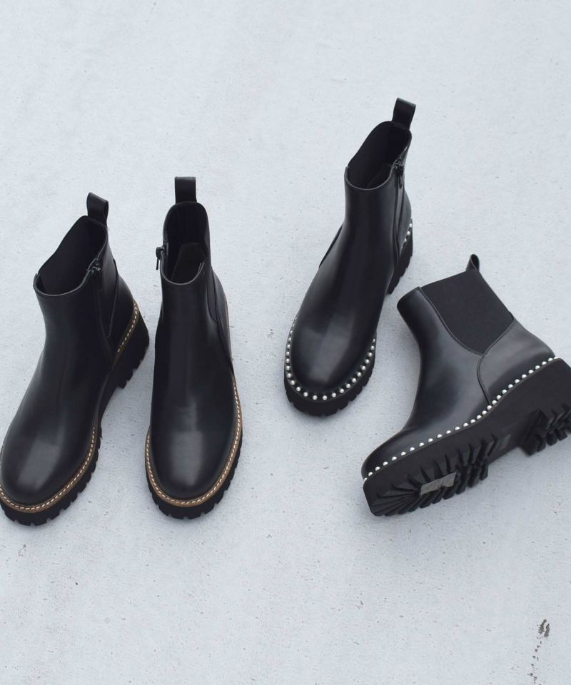 ステッチ部分がパールバージョン(ブラック系その他)はハードなサイドゴアにレディな要素をプラスした