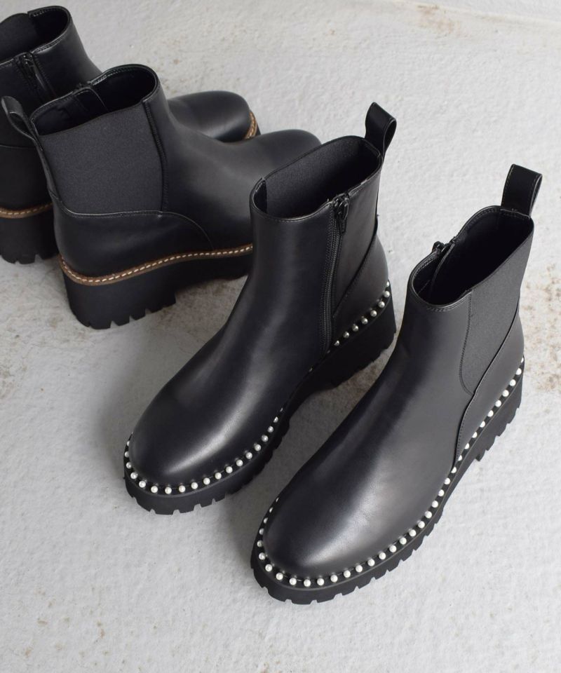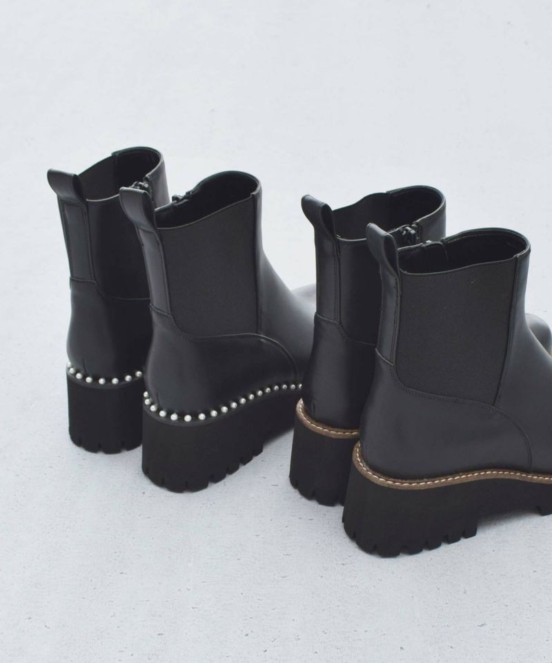ステッチ部分がパールバージョン(ブラック系その他)はハードなサイドゴアにレディな要素をプラスした
