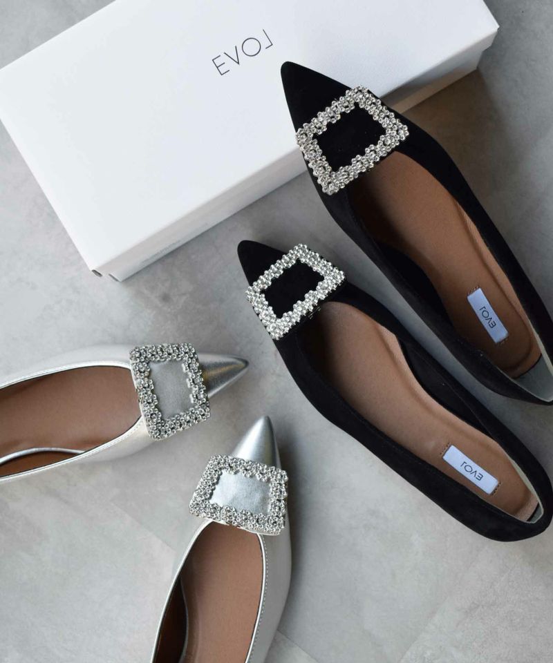 すっきりとしたポインテッドトウで、フラットでも足元を綺麗に見せてくれます。