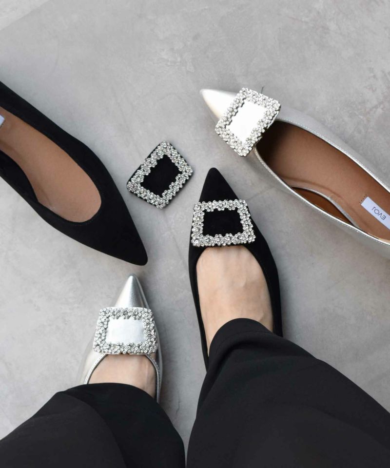 すっきりとしたポインテッドトウで、フラットでも足元を綺麗に見せてくれます。
