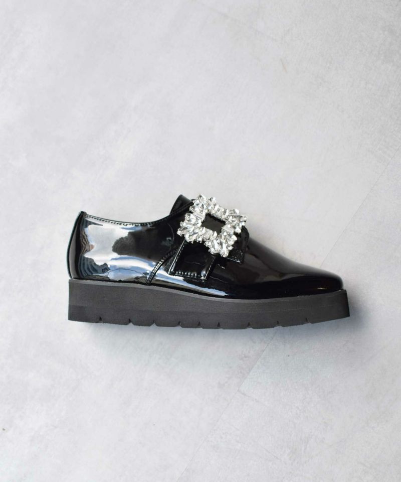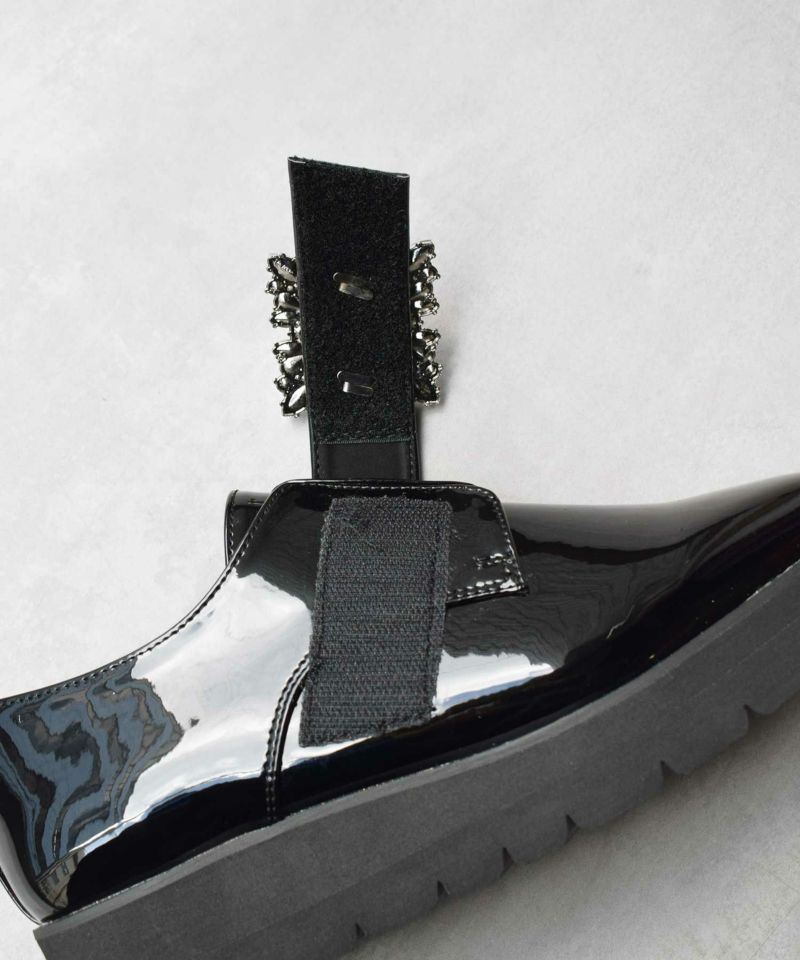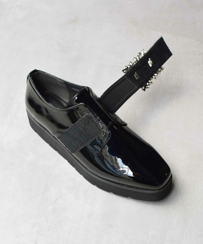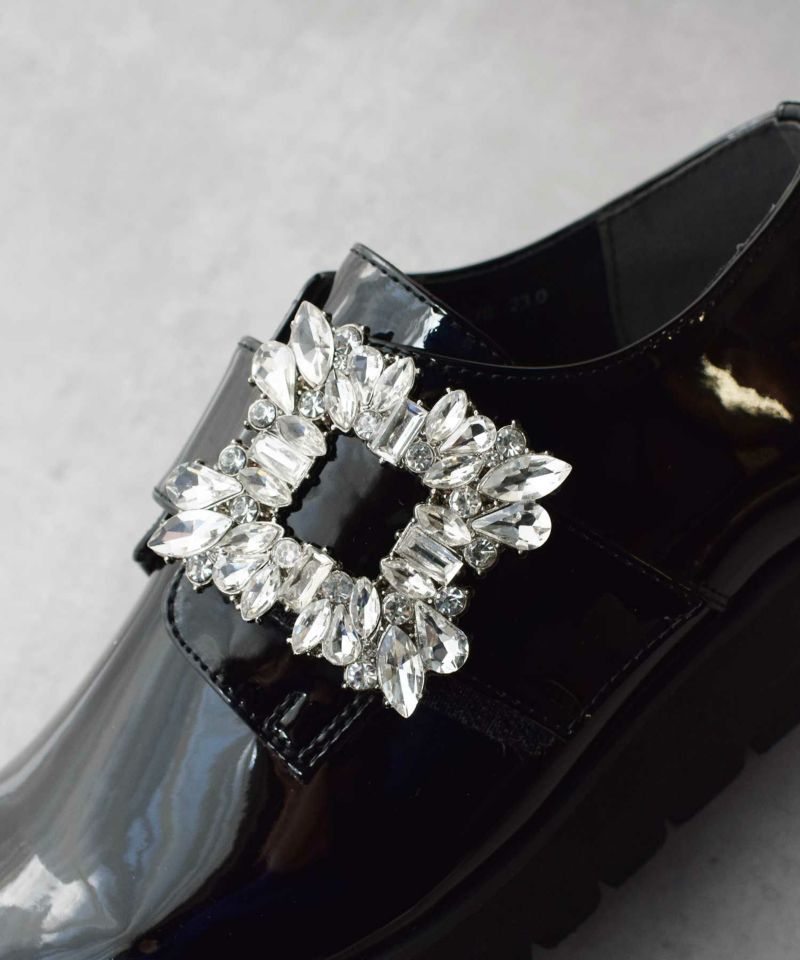 キラキラビジューのバックルが目を惹くドレスシューズ