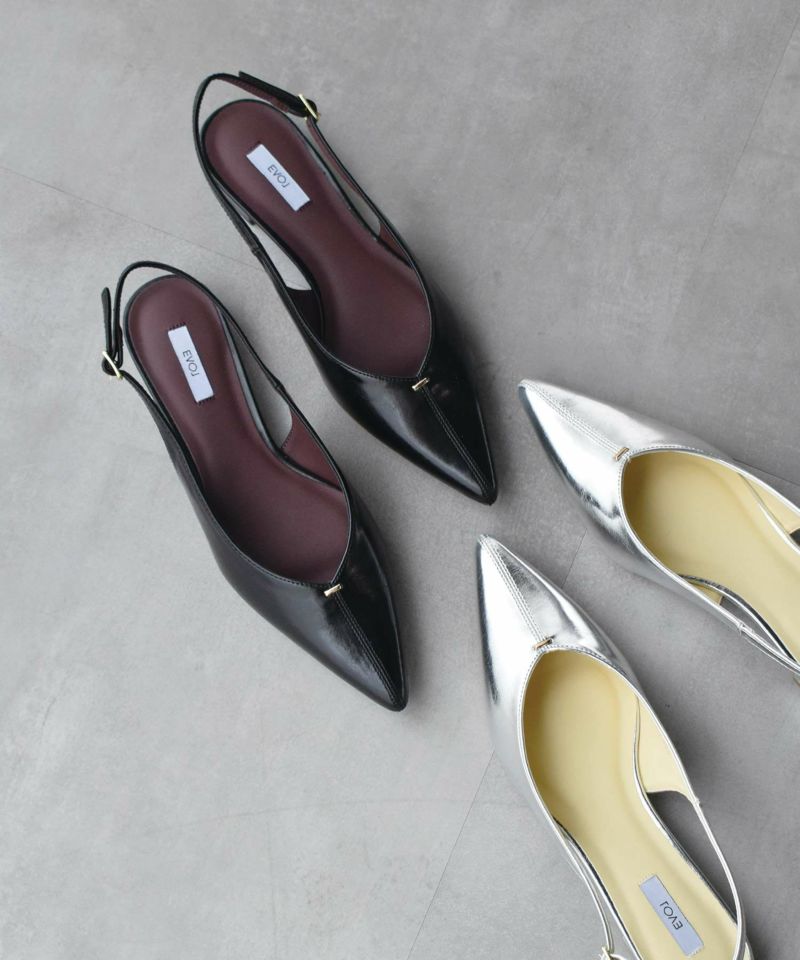 ローヒールながらもすっきりとした足元にみせてくれます。