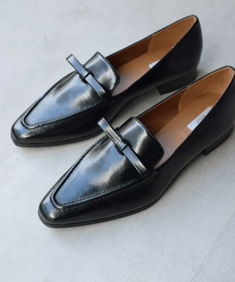 ローヒールのリボンローファーデザインはクラシカルでレディな雰囲気。
