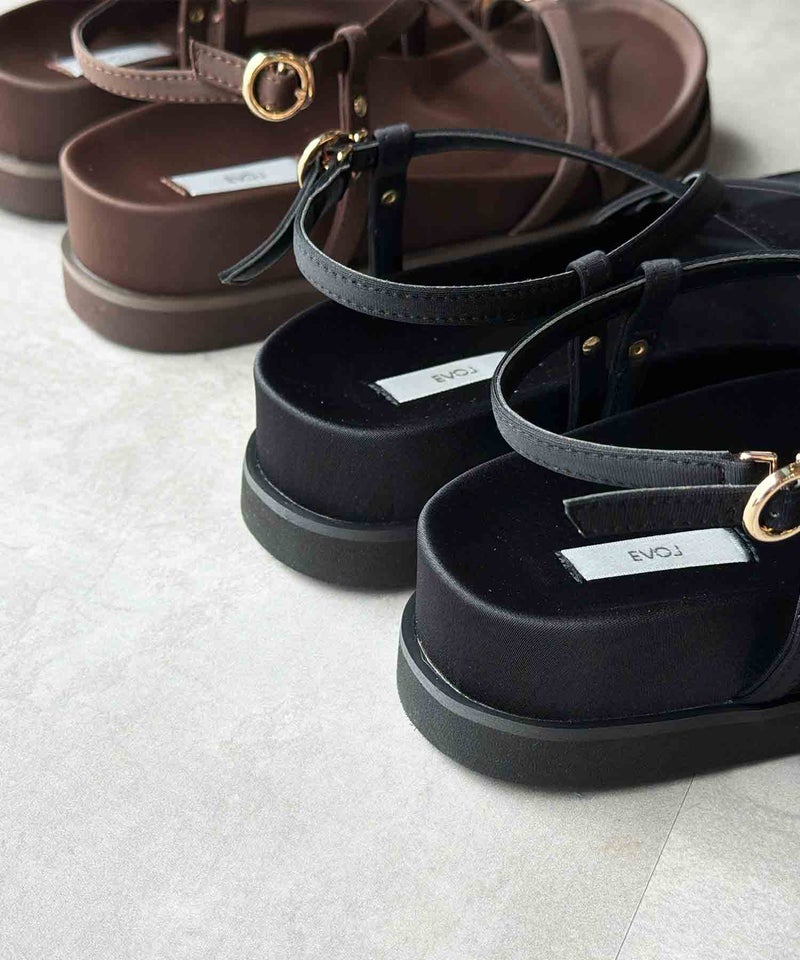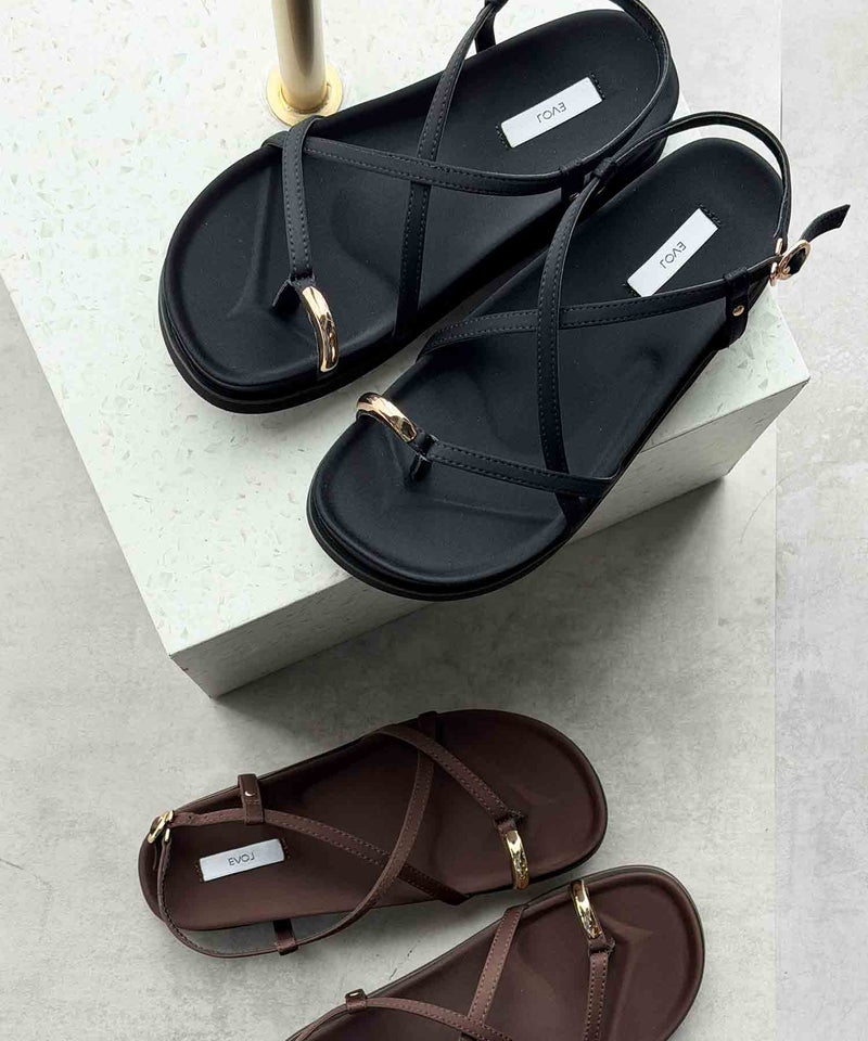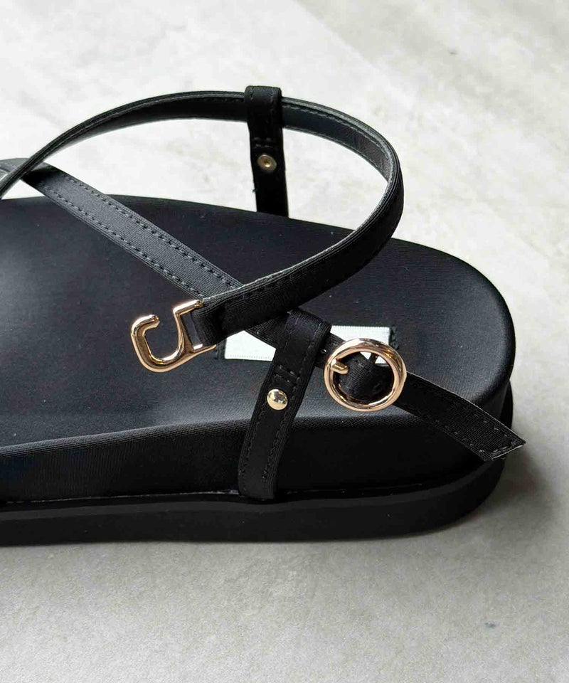 華奢なクロスストラップが足元を美しく魅せながら、程よい厚底ソールでスタイルアップも叶えてくれます。