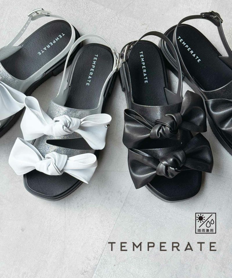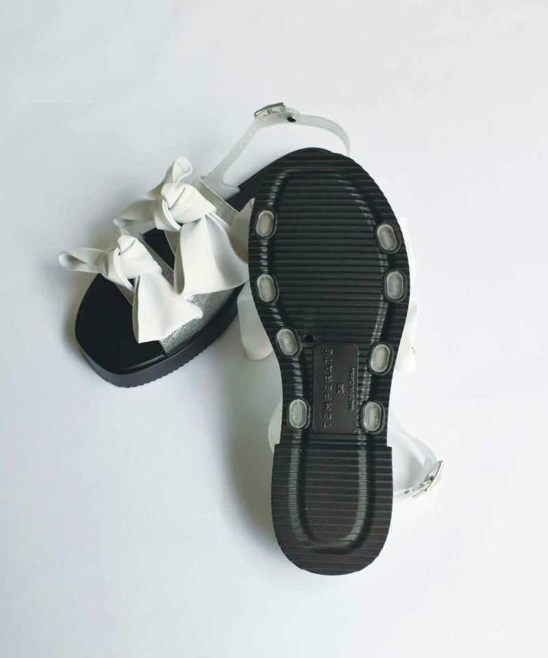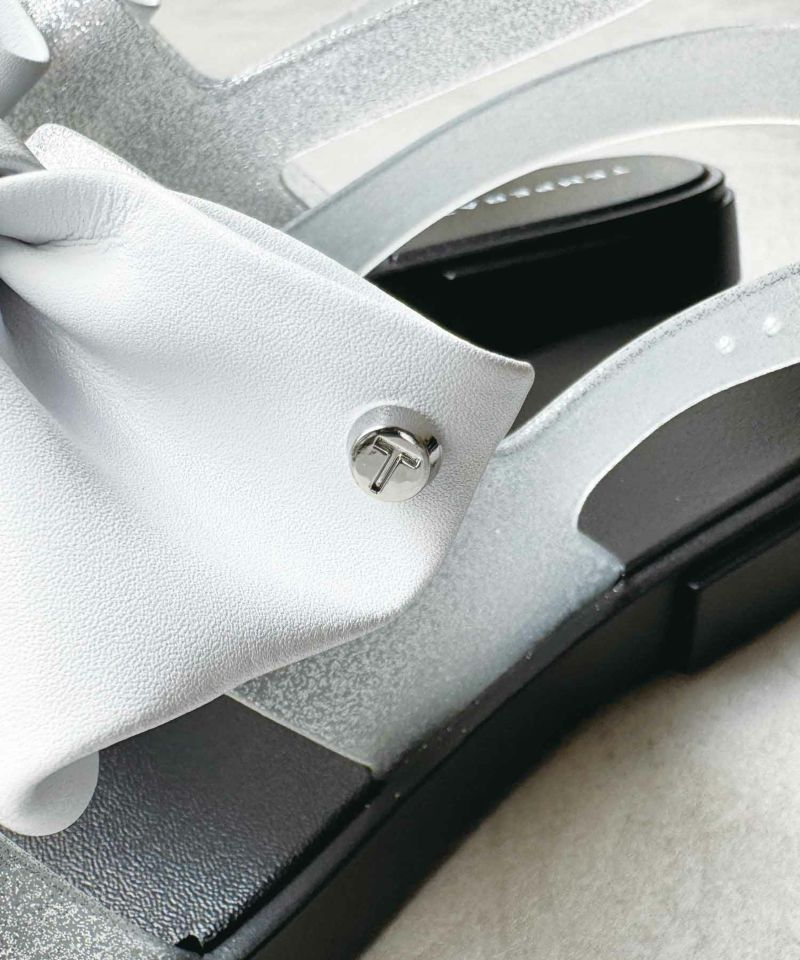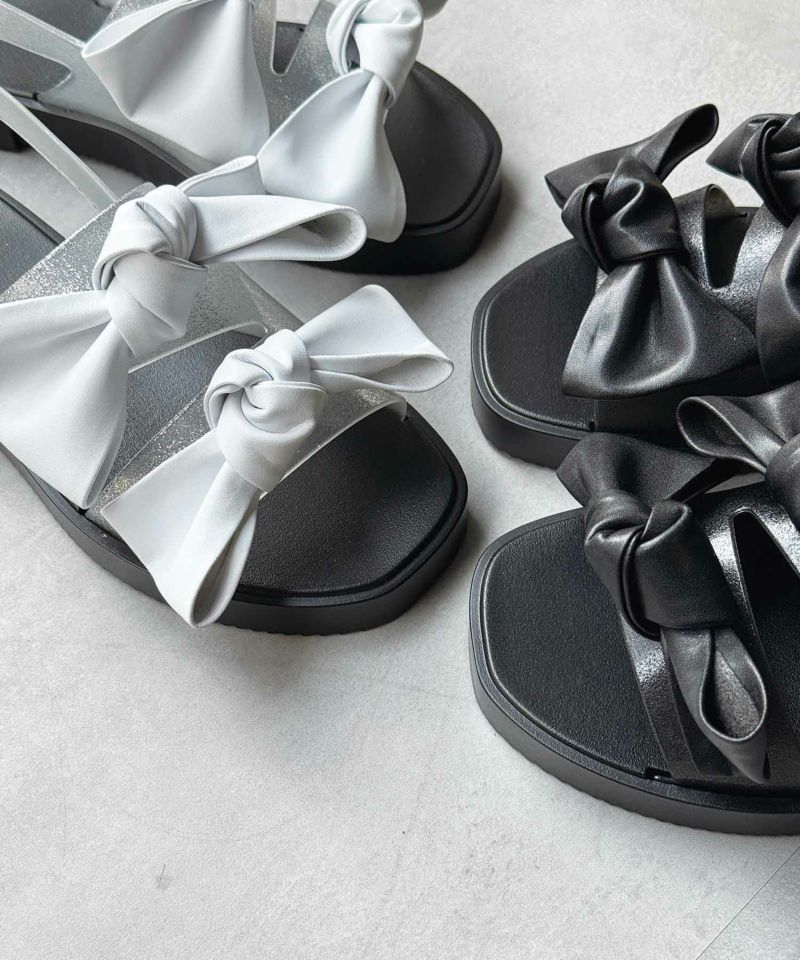 クシュっと大きなダブルリボンで足元が華やぐサンダル。