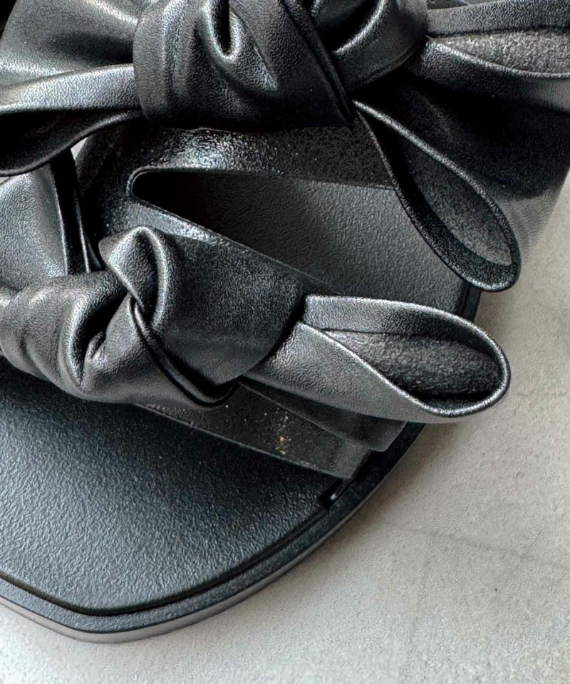 クシュっと大きなダブルリボンで足元が華やぐサンダル。