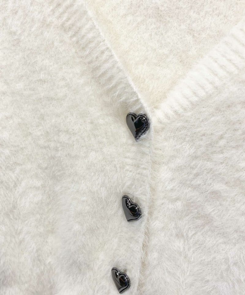 フロントには、きらりと光るハートのボタン。主張しすぎず、それでいて印象に残る、ちょうどいいアクセントに。