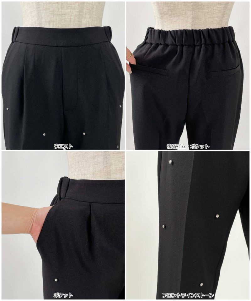 キラっと輝くラインストーンがコーデに華やかさを持たせてくれる魅力のパンツ。