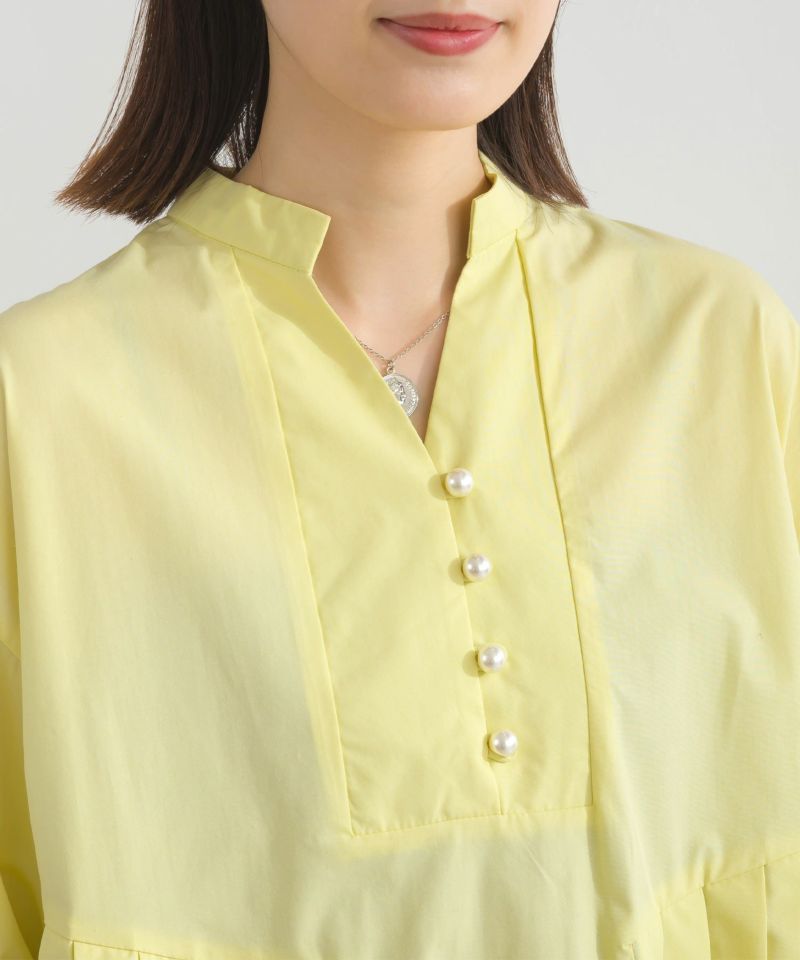 バンドカラーのプリーツブラウス