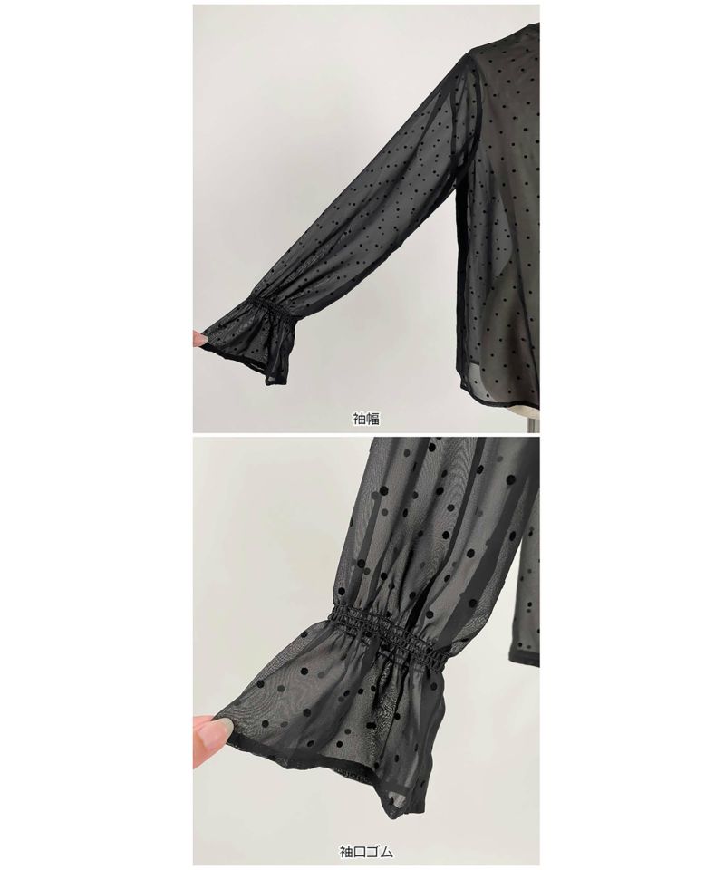 フロッキードット柄の上品なシアー感がポイントのブラウス。