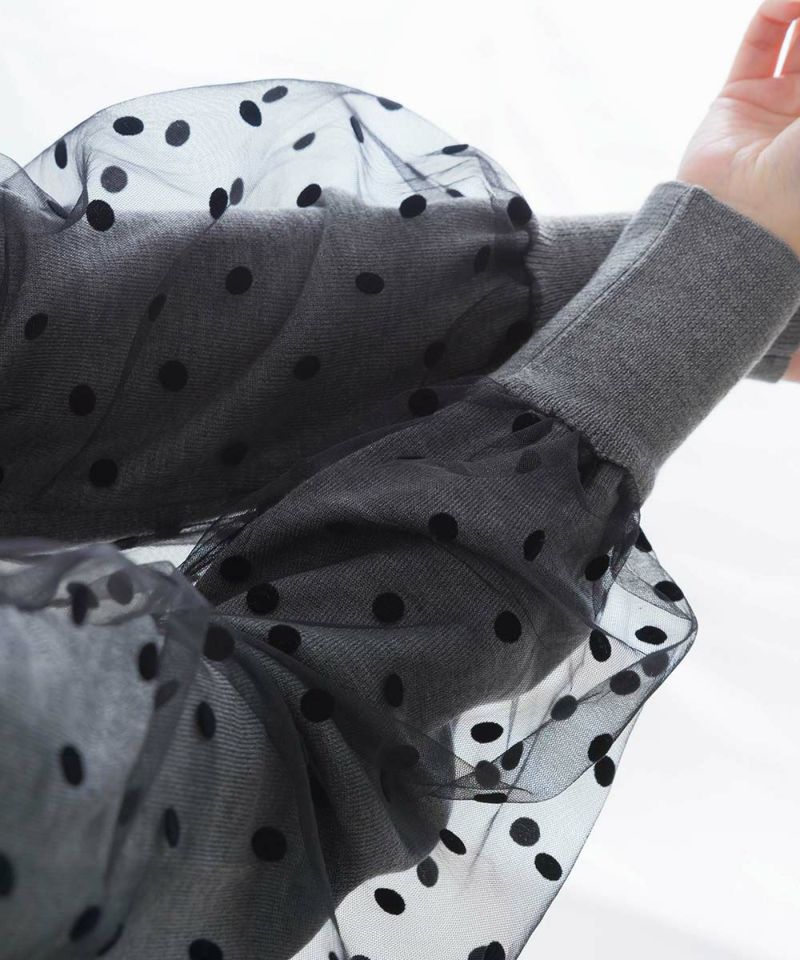 チュール部分にはフロッキードット加工が施されており、 コーデに一枚取り入れるだけで華やかな印象に見せてくれます。