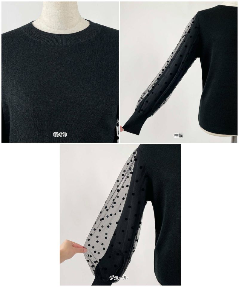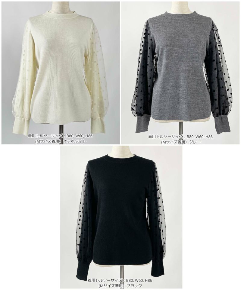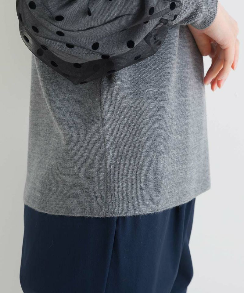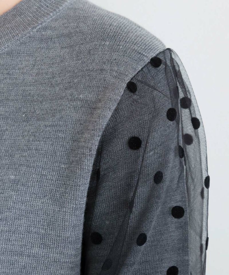 ウールブレンドの柔らかく滑らかな肌触りのニット生地を使用し、 シンプルニットに袖チュールをプラスした大人可愛い一枚に仕上げました。