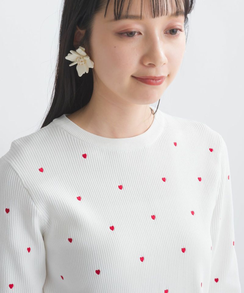 小さなハート柄の刺繍を全体に散りばめ、可愛らしさと華やかさをプラスしました。