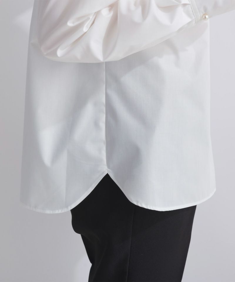 きれいな丸みのヨーク襟とラウンドカットされた裾がふんわり優しい印象に。
