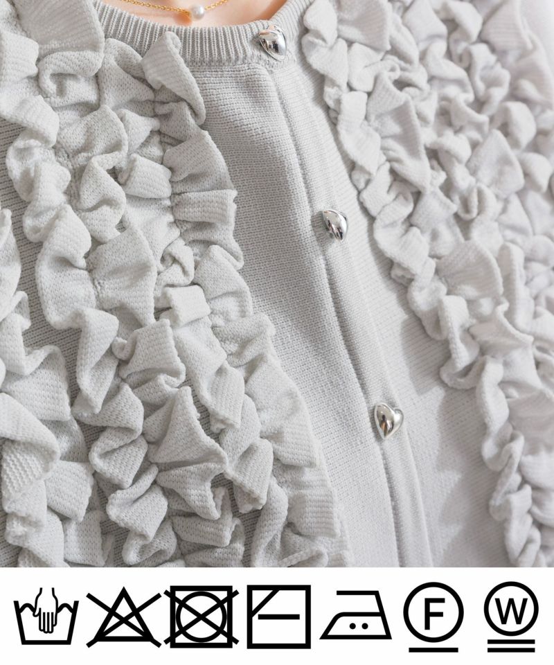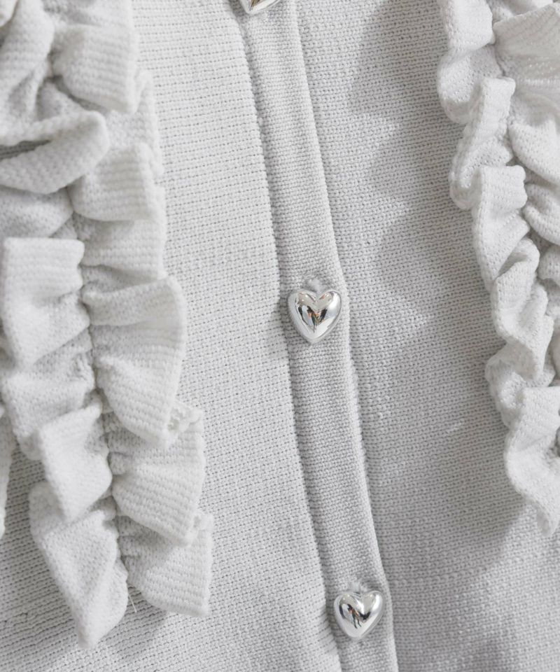 フロントにフリルやハート型のシルバーボタンを施す事で、