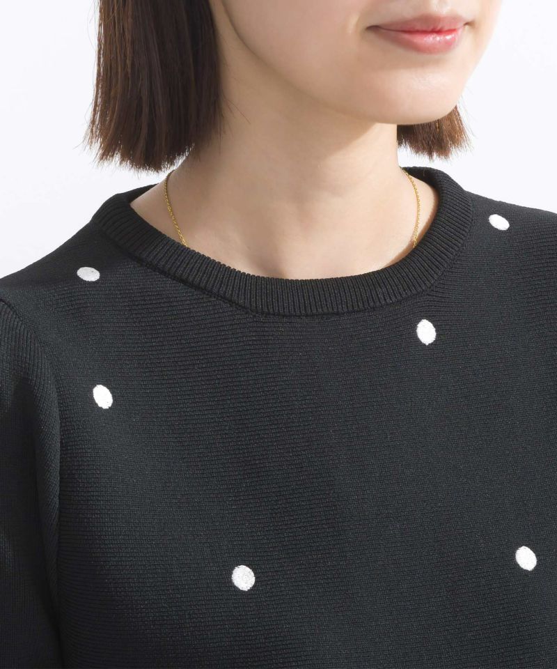 配色ドット刺繍や肩ギャザーを配し、女性らしく華やかな印象に。