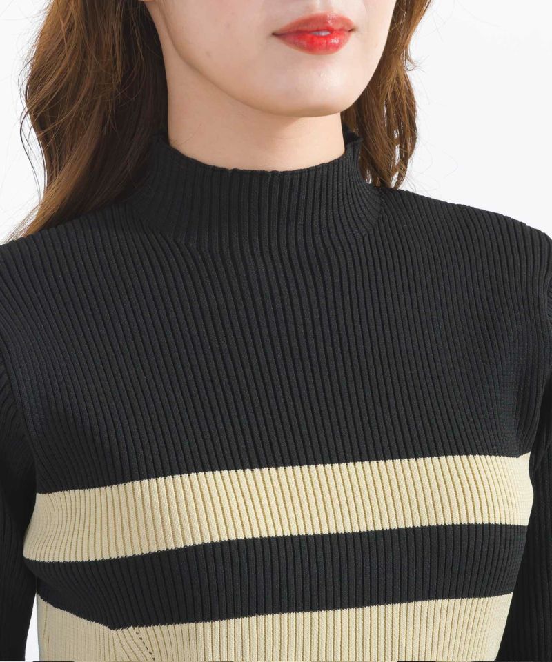上身頃や袖はリブニット、切り替えから異なる編地のニットを採用し表情をプラス。