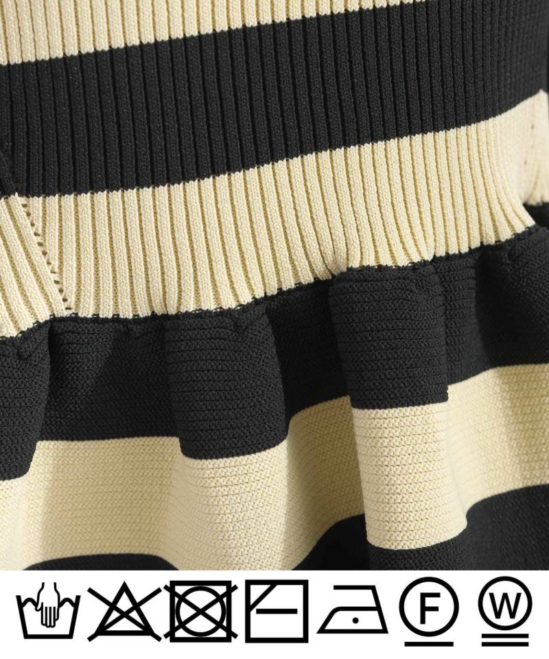 上身頃や袖はリブニット、切り替えから異なる編地のニットを採用し表情をプラス。