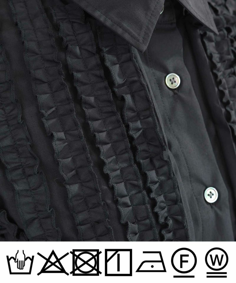フロントにたっぷりのフリルを配し、華やかで存在感のある一枚に仕上げました。