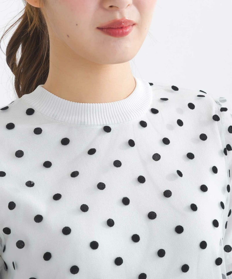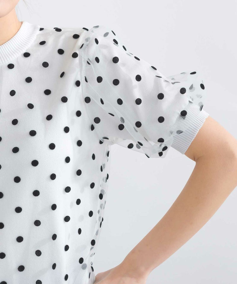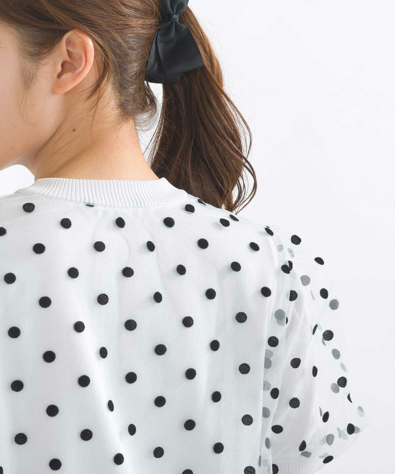 ニットの上にフロッキードット柄のチュールをレイヤードし、