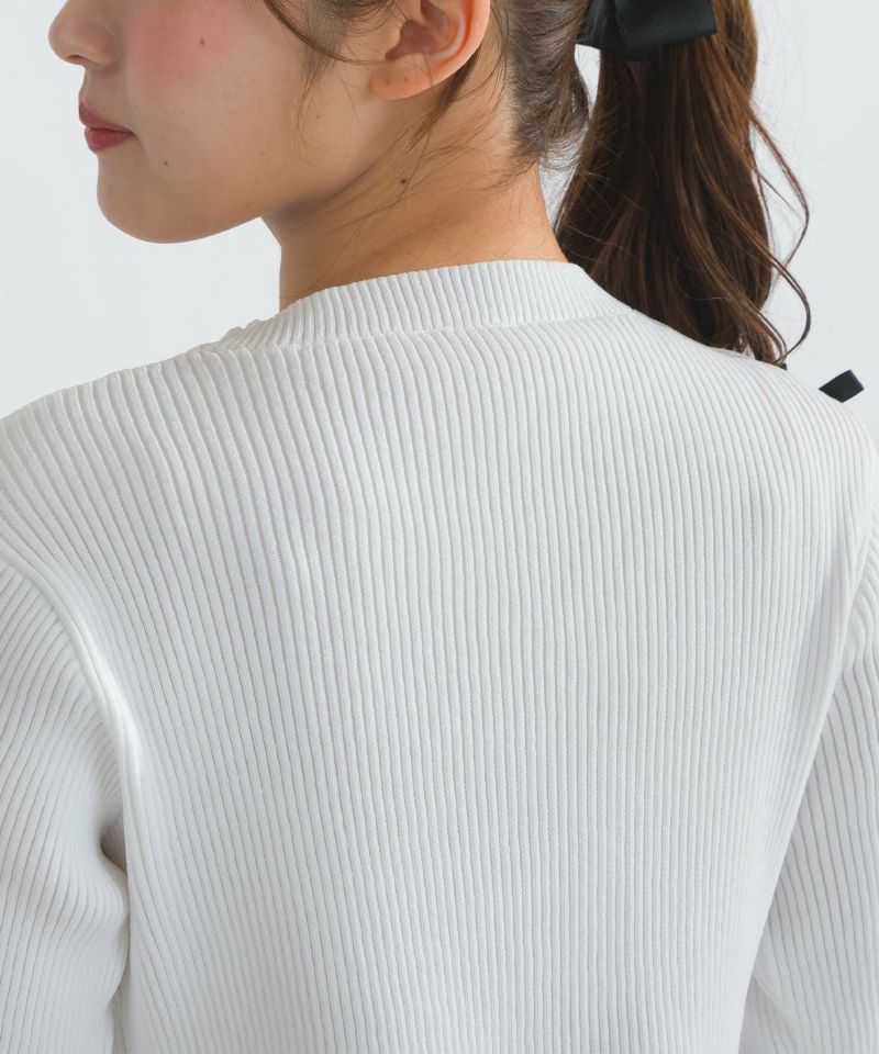 上身頃や袖はリブニット、切り替えから異なる編地のニットを採用し表情をプラス。