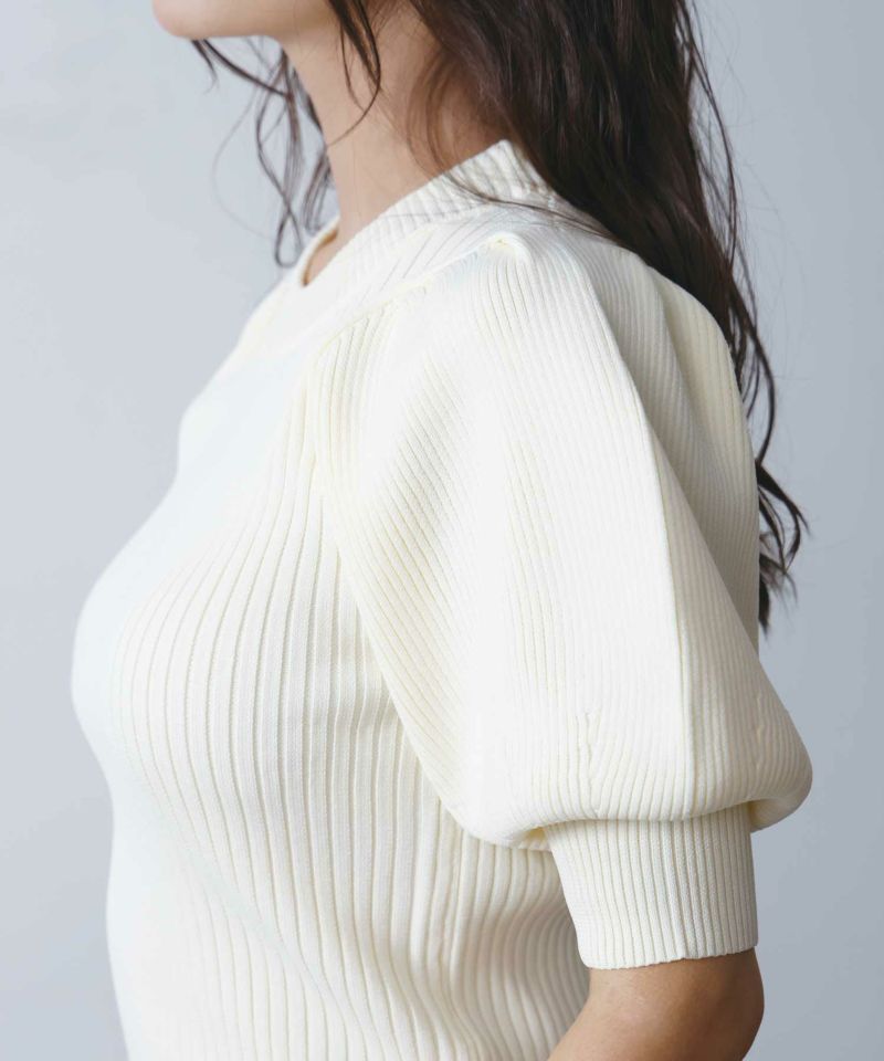 太めと細め、リブの編地をさり気なく切り替えることで、シンプルなのに動きのある一枚に仕上げました。