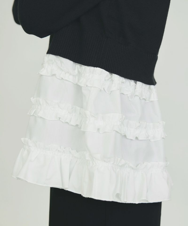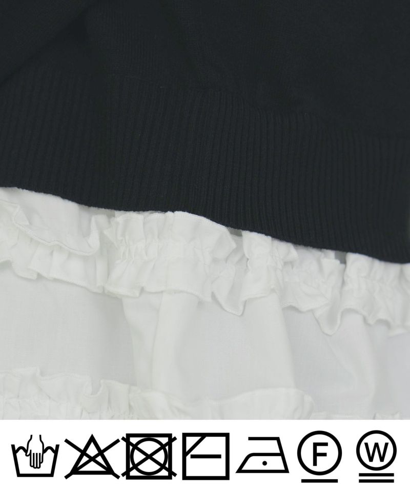 切り替えから下には、程よくハリのあるコットンブレンドの布帛を使い、たっぷりとフリルをあしらいました。
