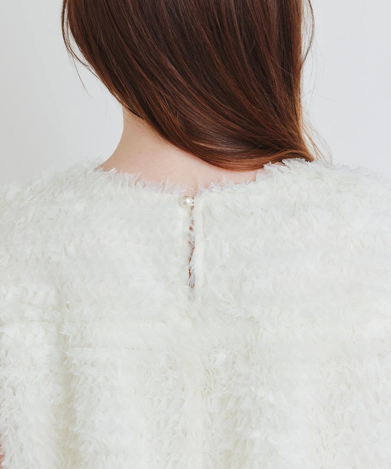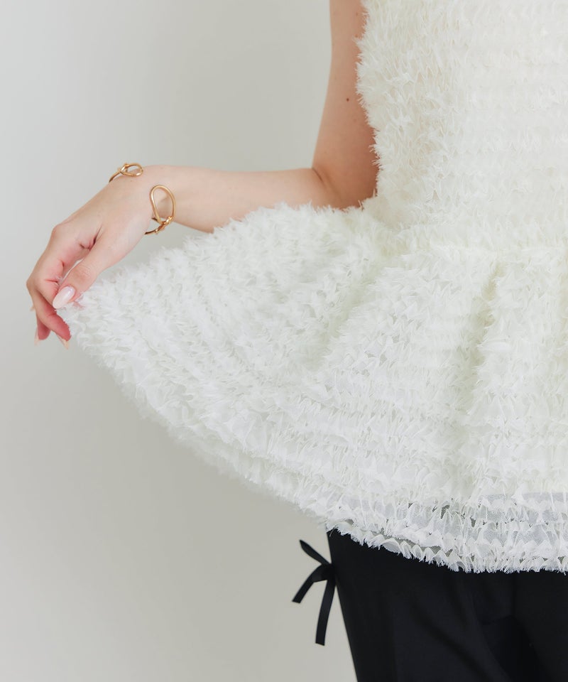 チュール生地の表面には、透け感ある生地を細かくウェーブ状に重ね、
