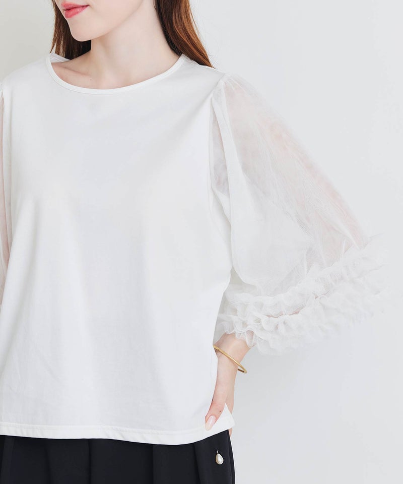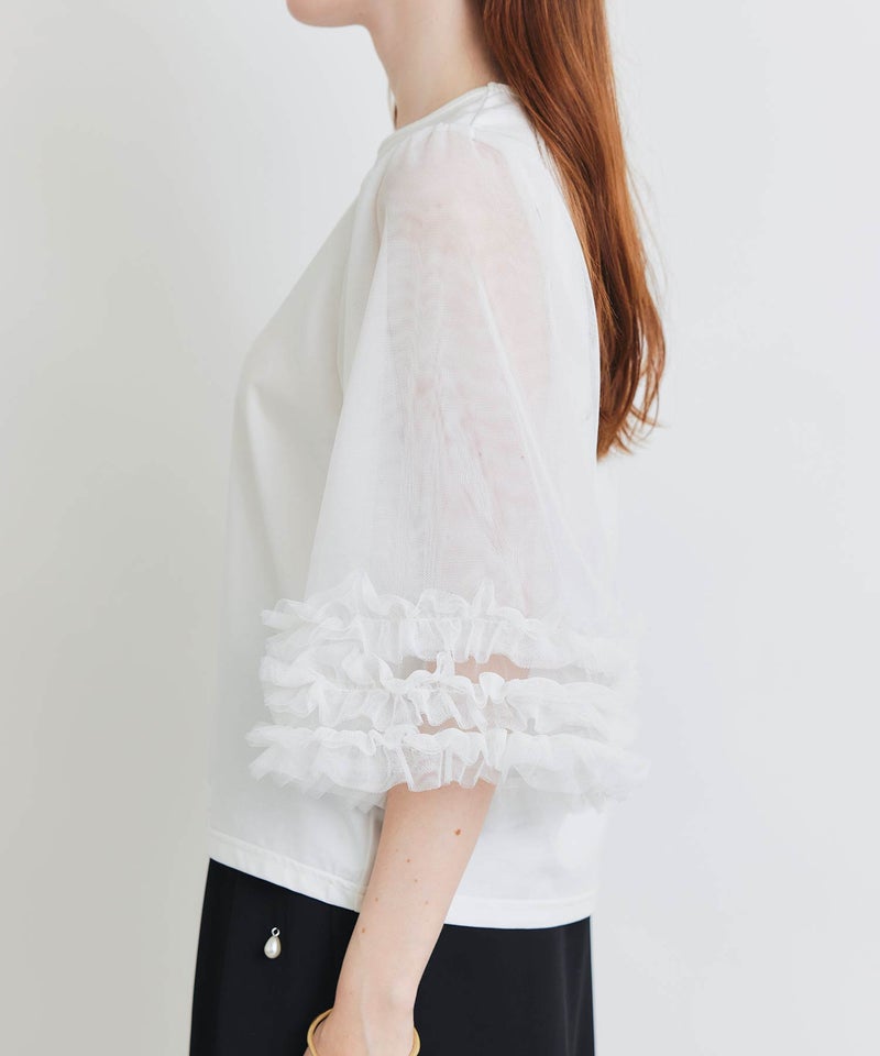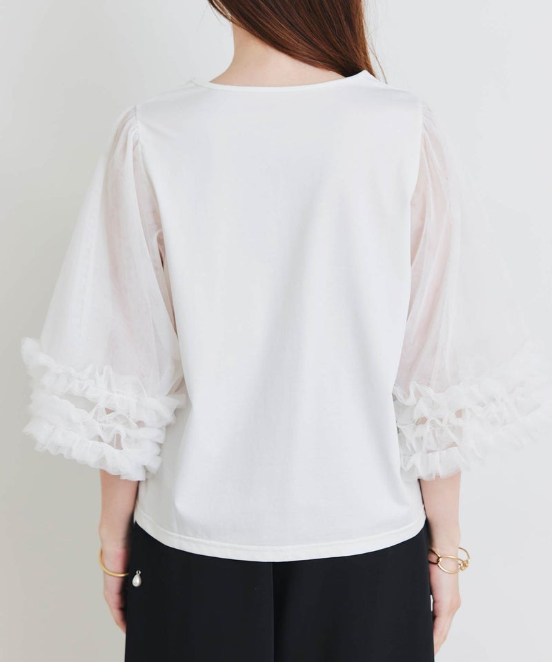 ふんわり軽いチュールの袖をプラスし、涼し気な印象に。