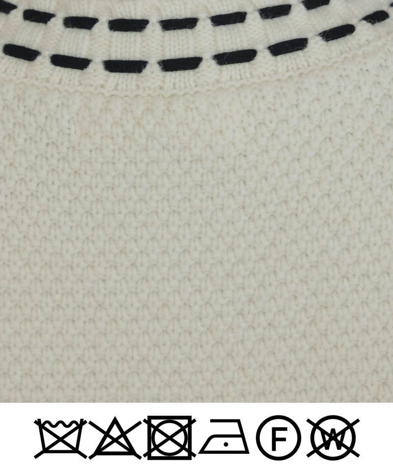 襟ぐりや袖口、ポケット等には、太めのリブ編みと配色のハンドステッチ。