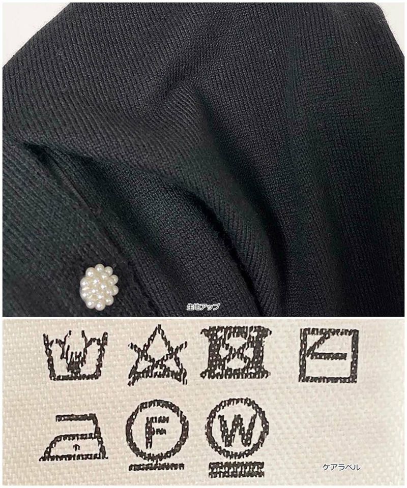 ボタンはビジューとパール、袖口と前立て部分にテープを配しました。