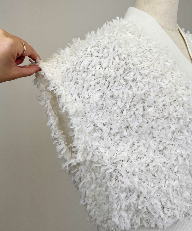 和紙から生まれた“抄繊糸”をリボン状に編み上げた、モールインレーを使用。