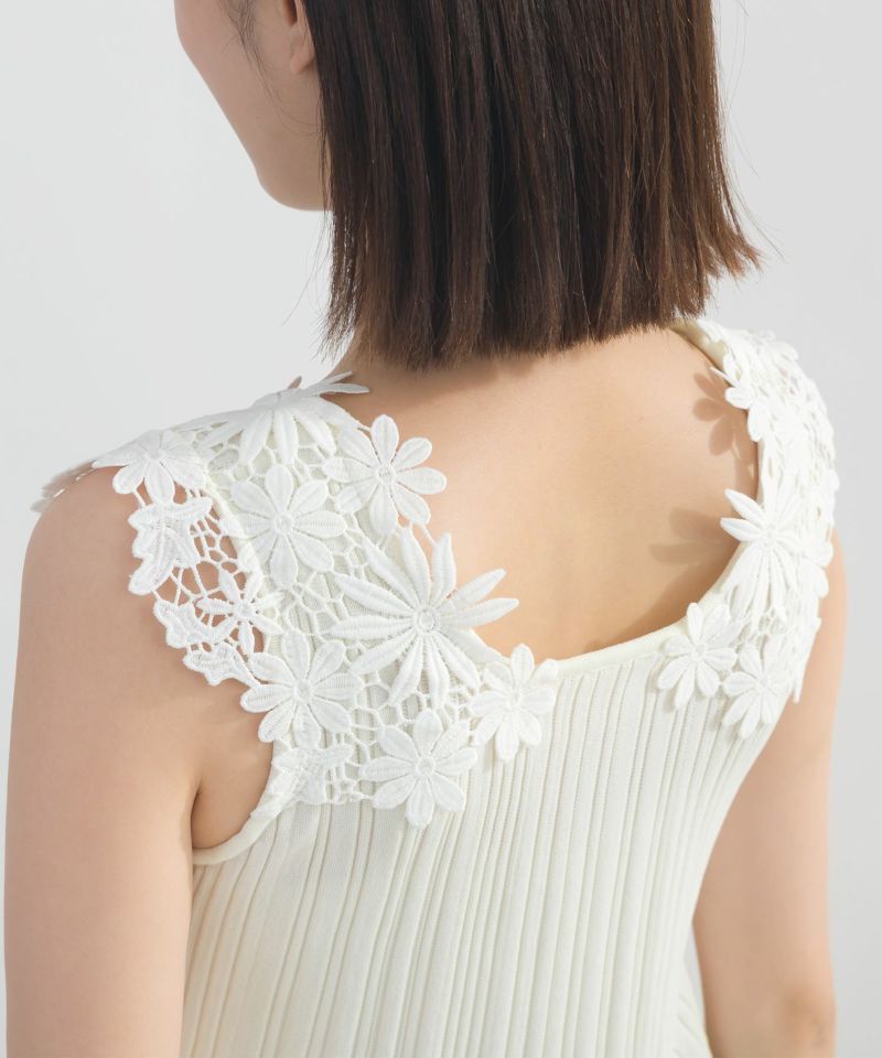ショルダー部分に配された繊細なフラワーレースが魅力で、上品で可憐な印象に見せてくれます。