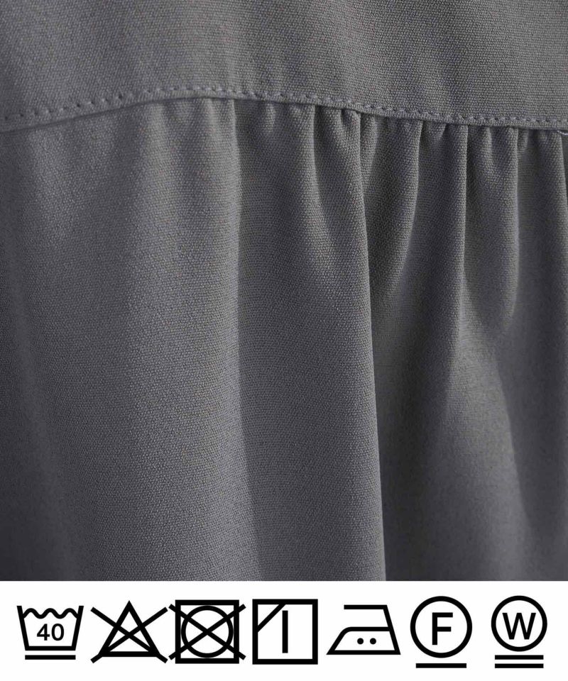 前後の切り替え部分や袖口にはギャザーが施され、女性らしいシルエットを作り上品な印象を与えてくれます。