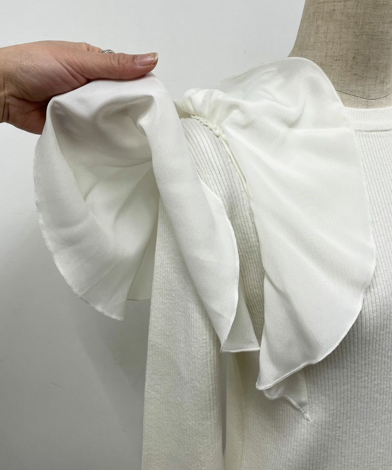 肩部分にほんのりと透け感のある異素材生地を施すことで