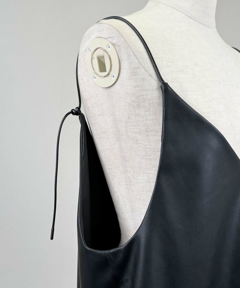 前はシャープなVライン、後ろはやさしいUライン。気分で前後どちらでも着られる2WAY仕様です。