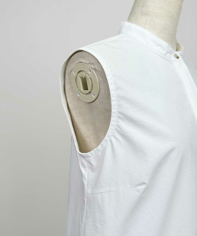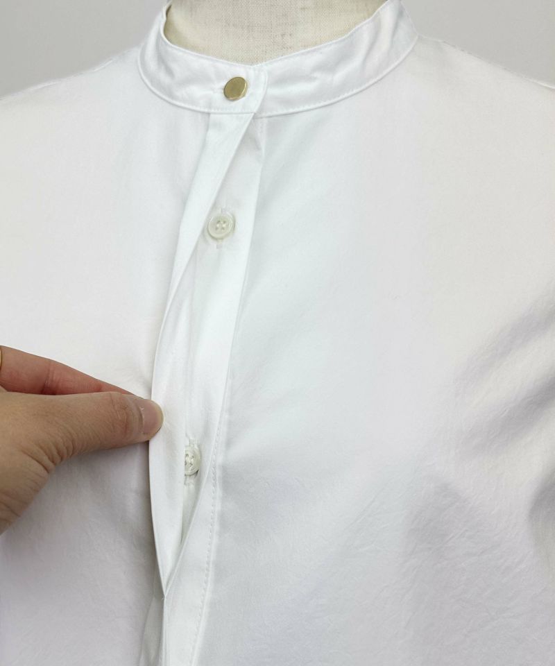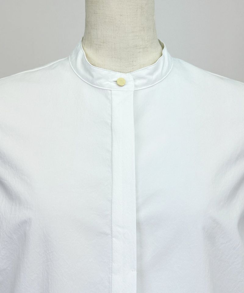 上身頃は、バンドカラーに比翼仕立てのすっきりと洗練されたデザインで、