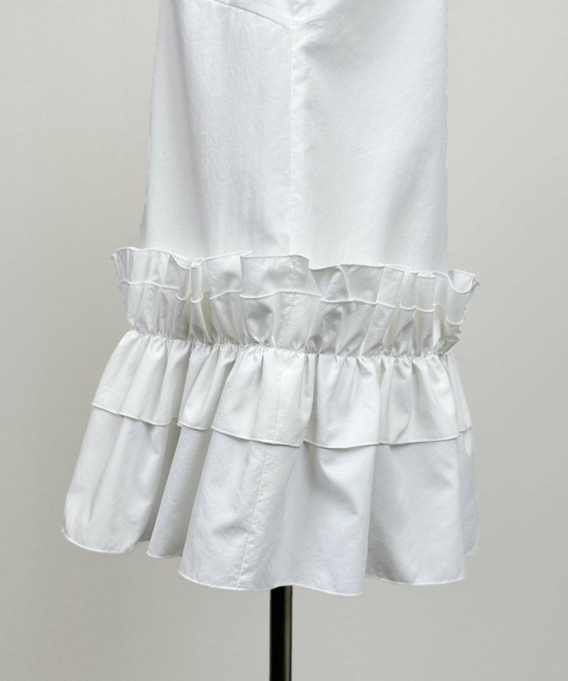 上下二段に配したフリルがウエスト周りを華やかに演出してくれます。