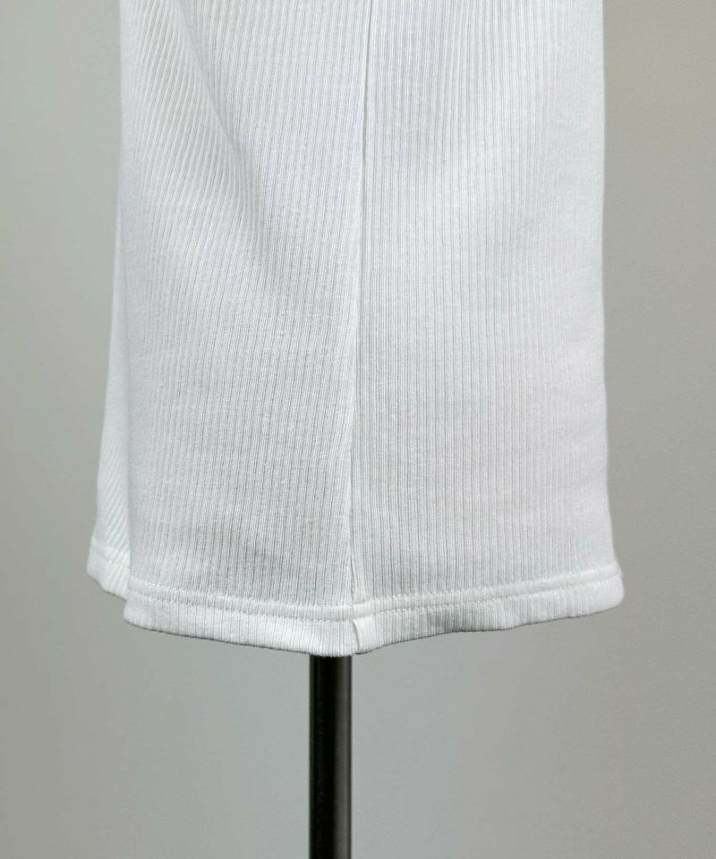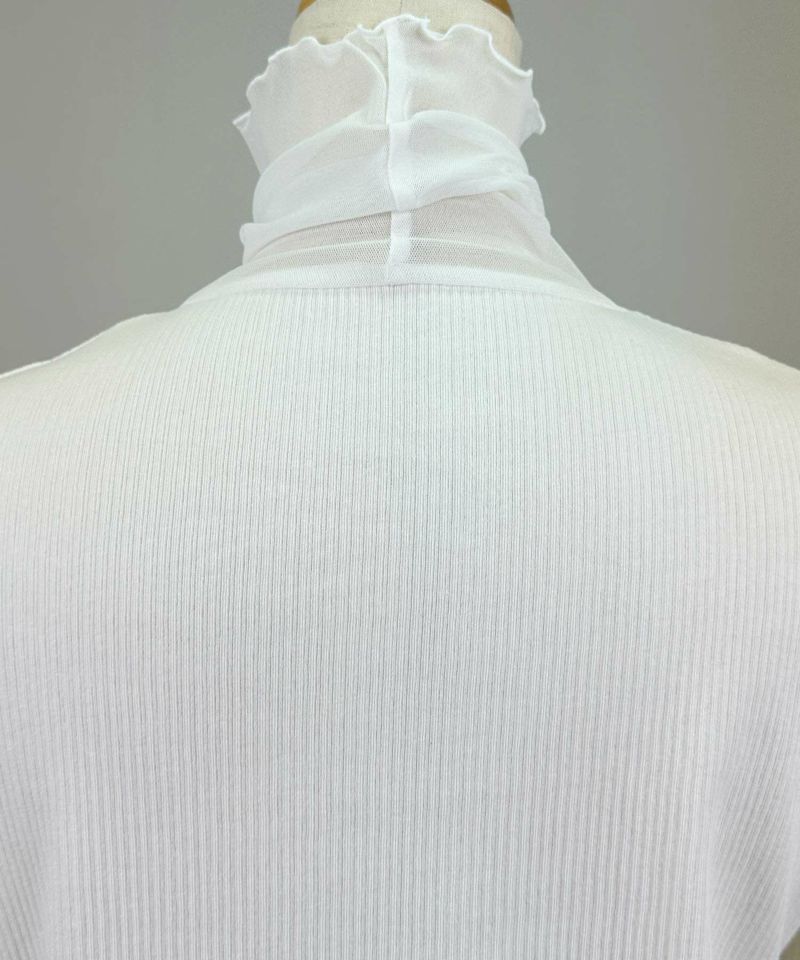 タートル部分と袖口にシアーなチュール素材を配したリブカットソー