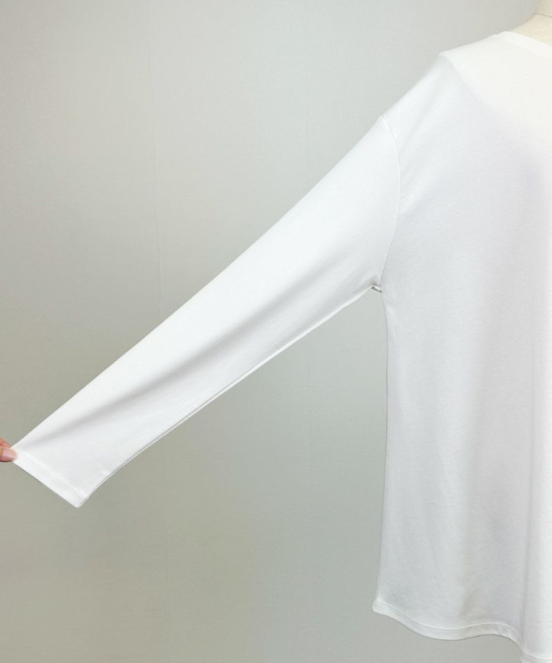 コットン100%のカットソー生地は、柔らかく伸縮性が効いており、着るたびに快適な着心地が感じられます。