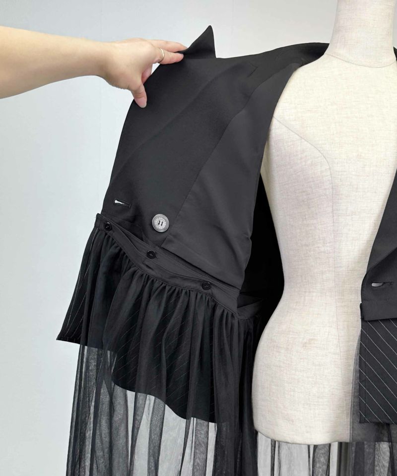 大人のおしゃれ心をくすぐるロングチュールテーラードカラージレ