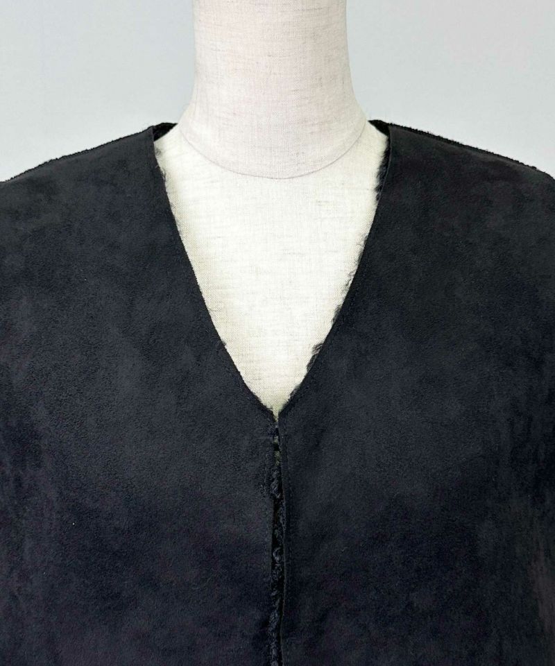 裏側は、スエードタッチの滑らかな生地が肌に優しく、落ち着いた雰囲気を与えてくれます。
