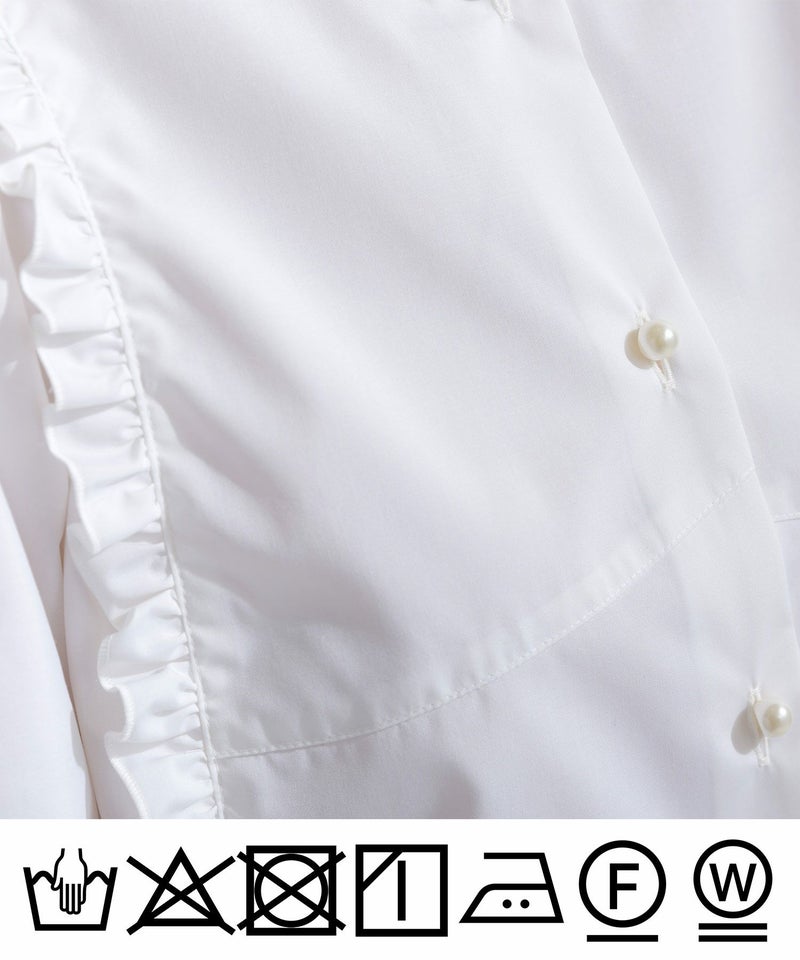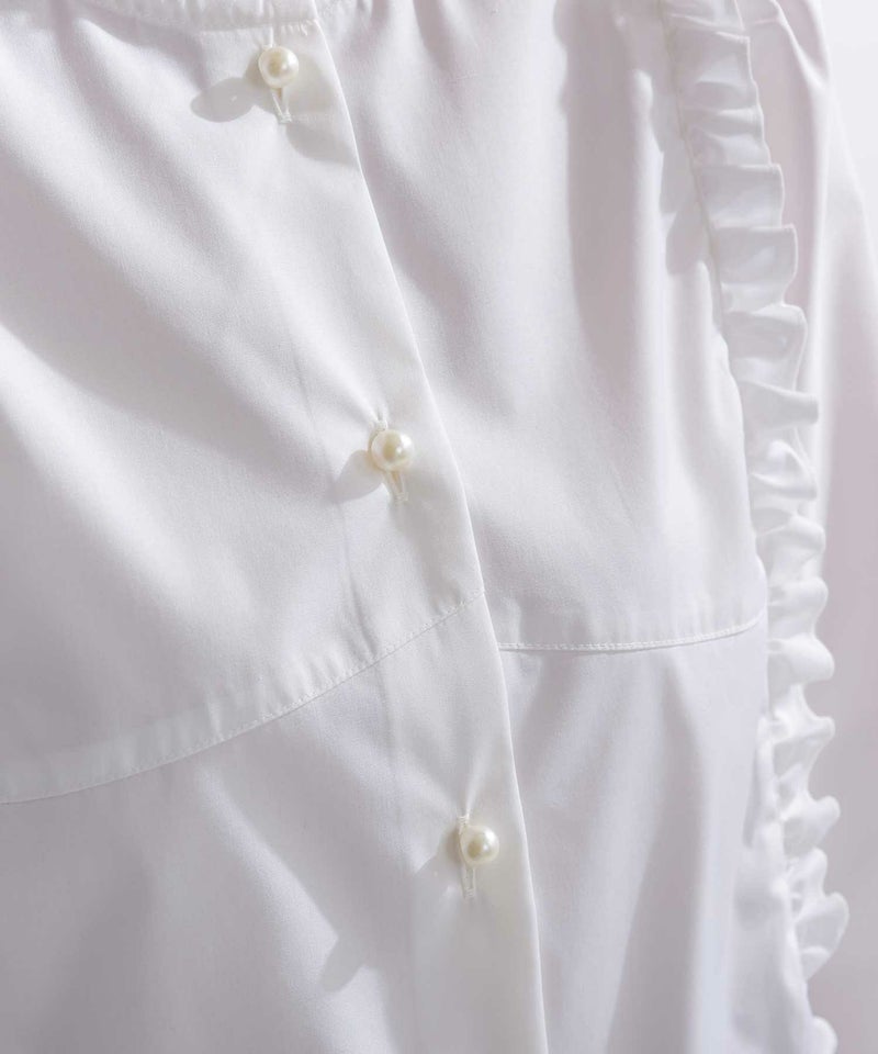 フロントと袖口にはパールボタンでエレガントさをプラス。