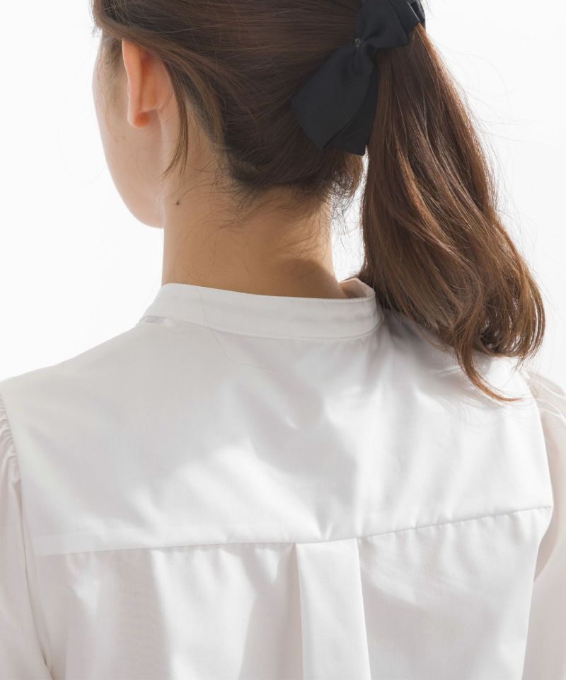 袖口や前立ての一番上のみにパールボタンを採用し、