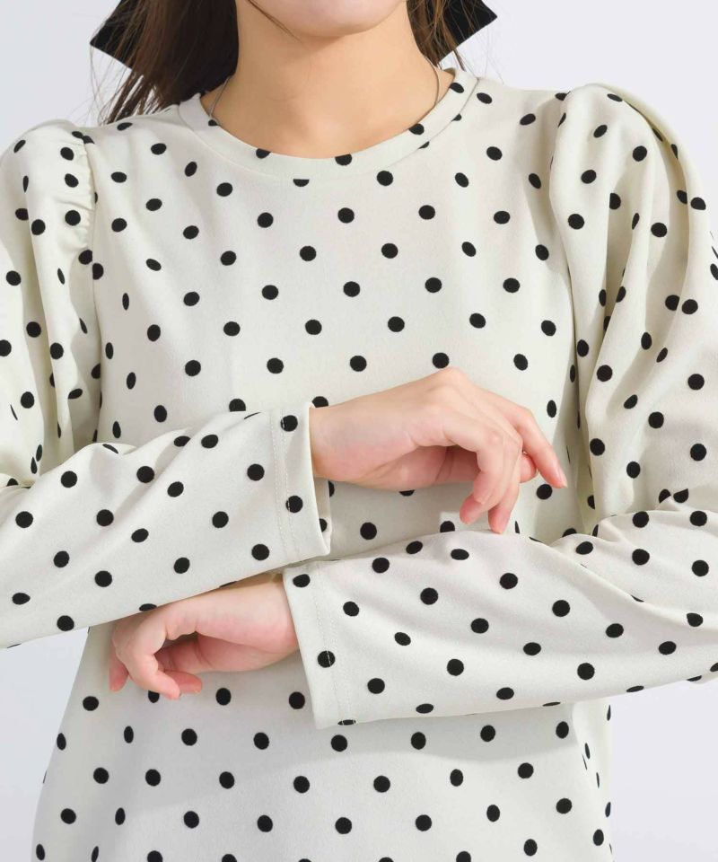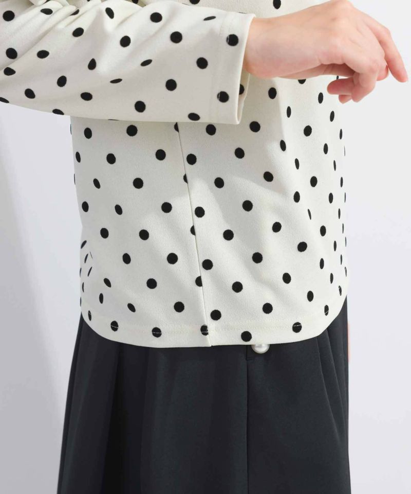 フロッキードット加工が施されたストレッチ素材のカット生地を使用。