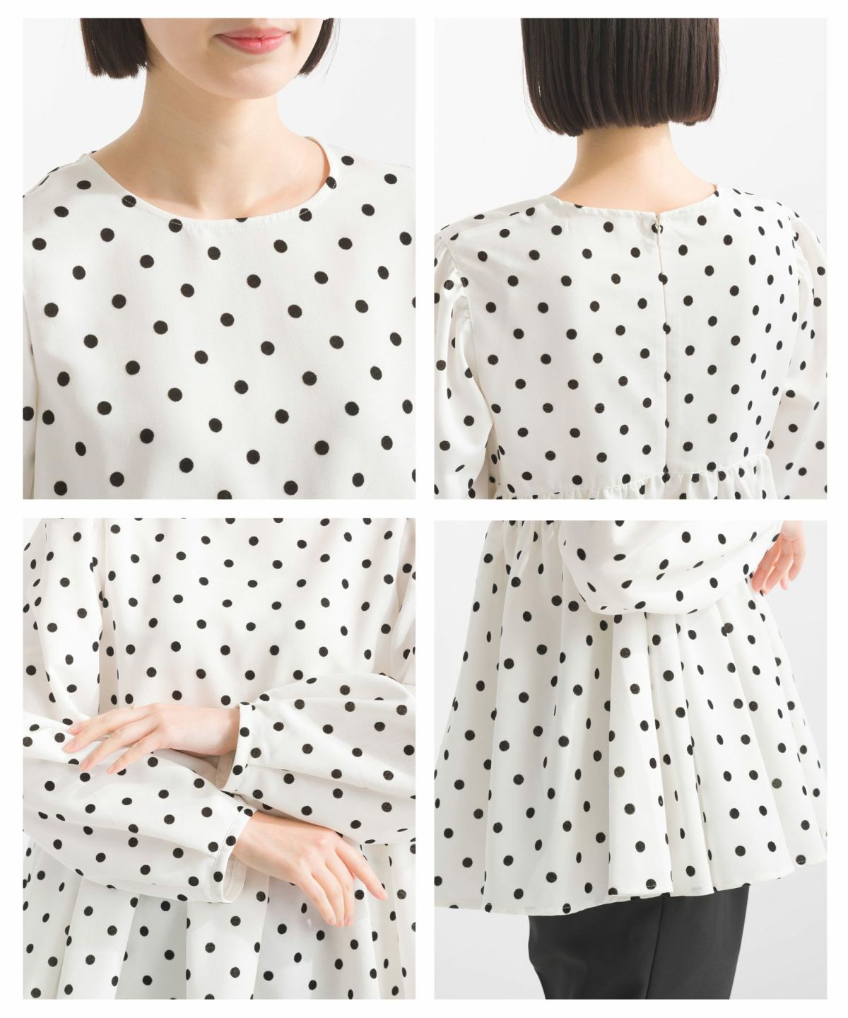 【セットアップ可能】フロッキードット切替ペプラムブラウス