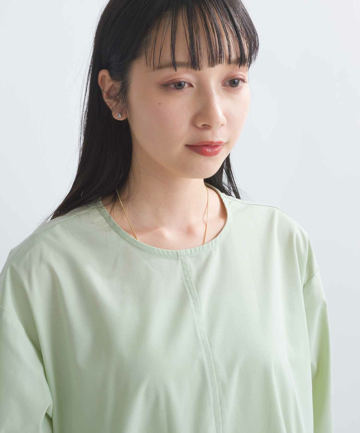 袖シャーリングシアーブラウス