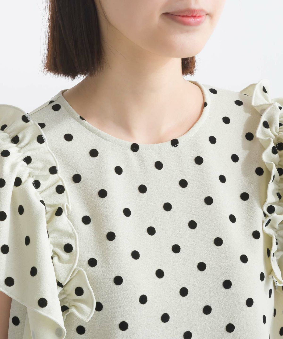 フロッキードットフリルショルダーブラウス