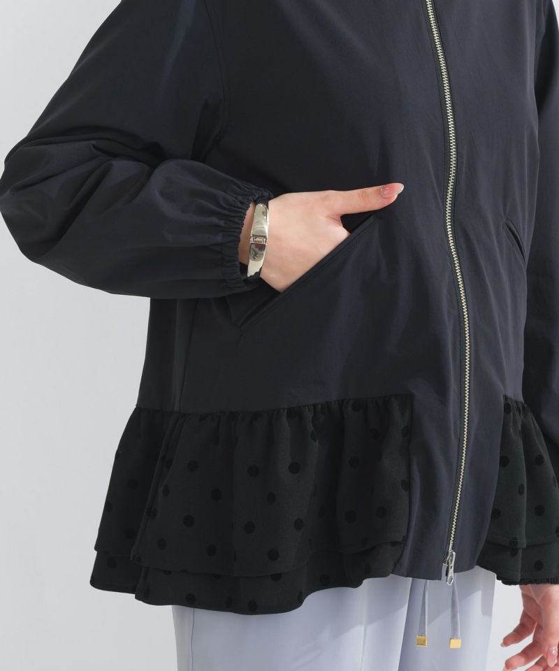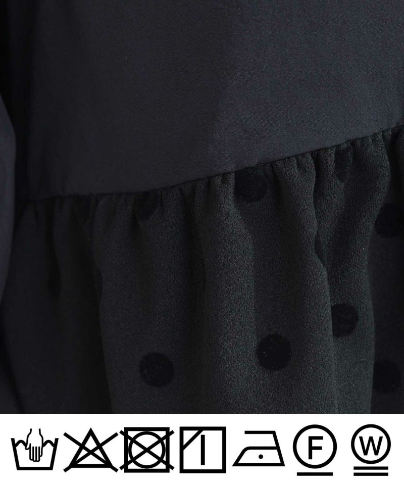 裾のフリル部分にフロッキードットのカット生地をプラスし、