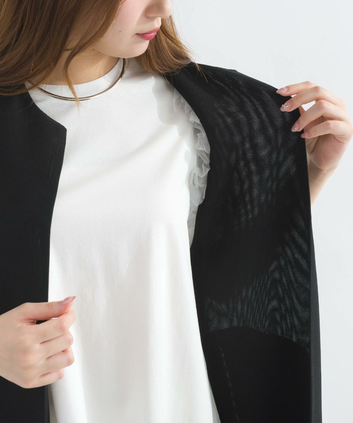 ポケットパールメッシュロングジレ